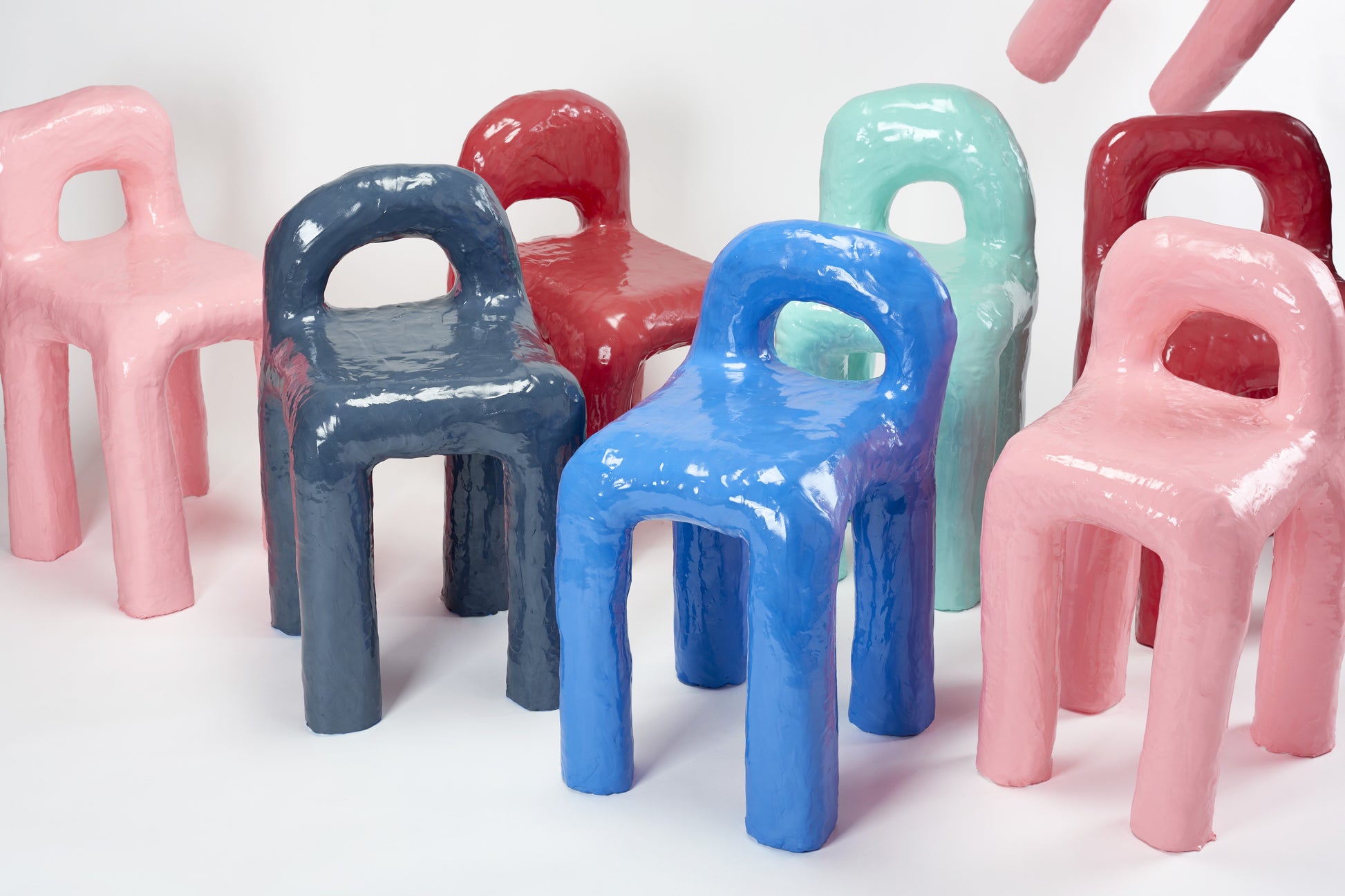 Stool made in brightly colored clay, designed in a bid to inject some fun into daily and forgotten objects.