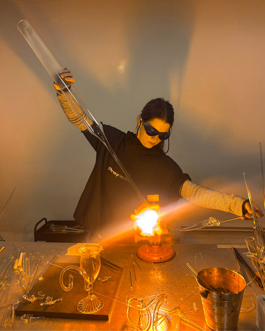Her work merges craftsmanship with innovation, pushing the limits of what flameworked