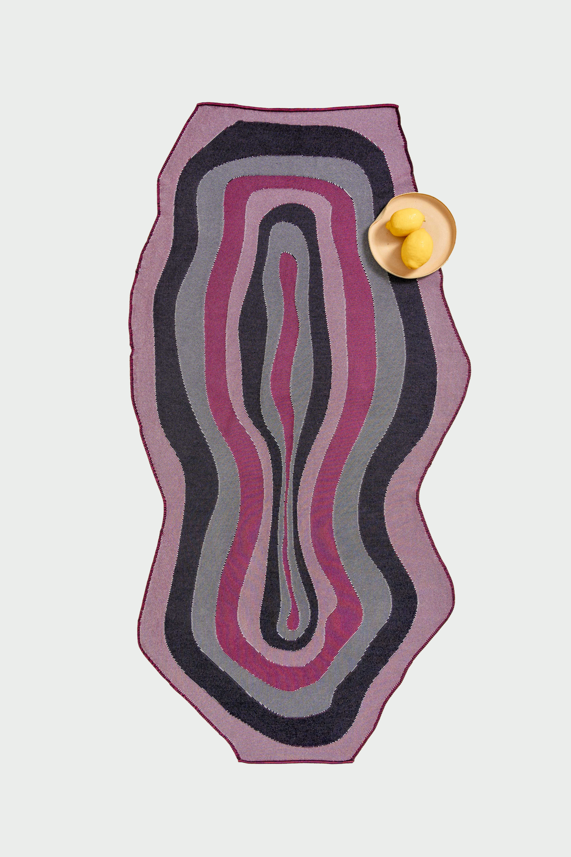 Tablecloth from the BOI Collection N°1 with charming wavy edges and organic shape. The unique inlay yarn technique gives this piece a woven-like optic. By combining knitting and weaving, the product has softness that is characteristic for knit, and stability similar to woven textiles. Knitted directly into shape in BOI's studio in Berlin with less than 1% material waste.
