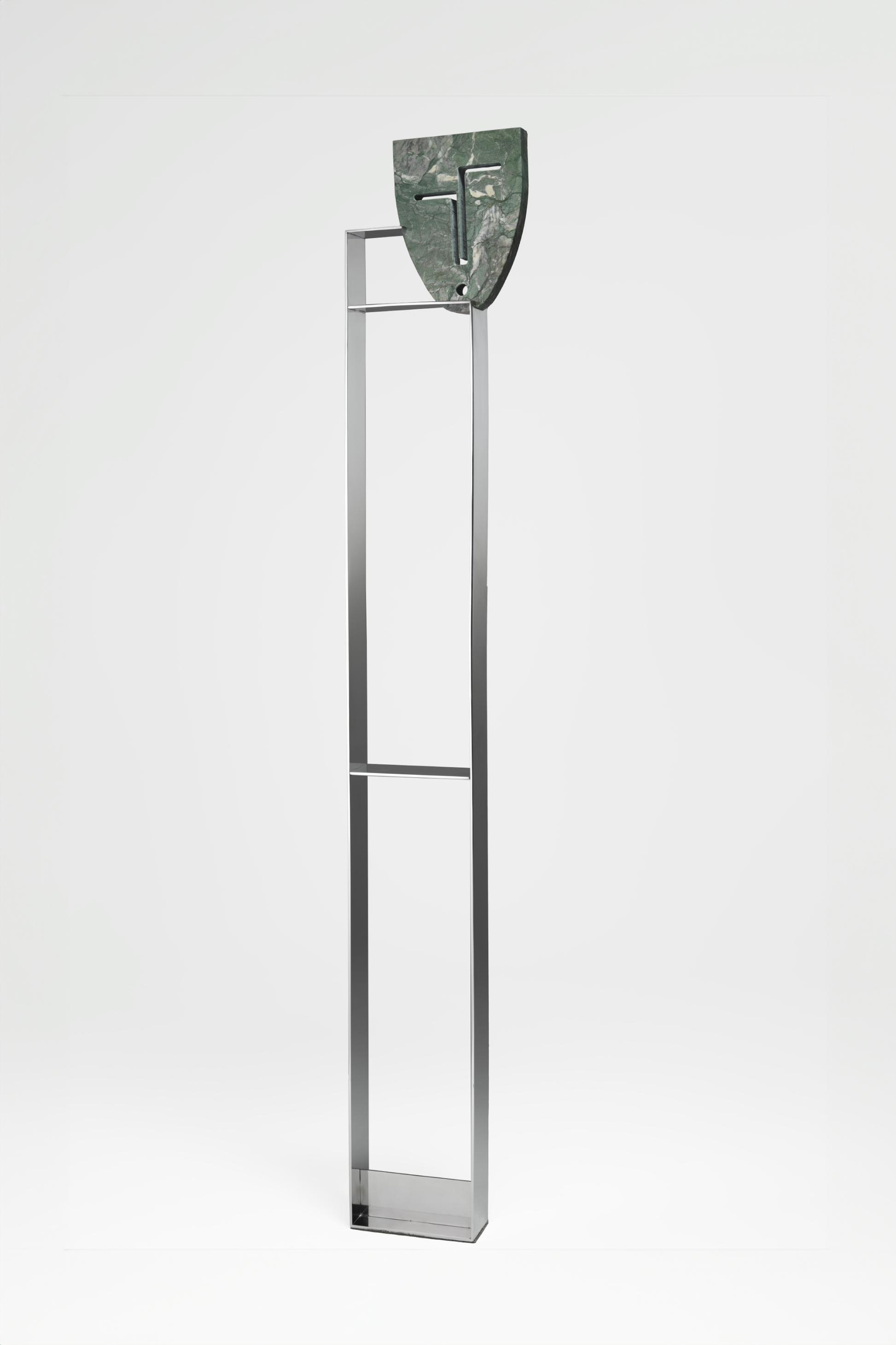 Testa dei Marmi embodies the studio’s aspiration to showcase the sculptural heritage of natural resources by reclaiming marble waste through conscientious object design. 001TDM sculptures are anonymous and androgynous, offering a range of scenarios through the interplay of materiality and composition. Slightly larger than a human face, the heads are crafted by tuscan artisans into thick marble, giving it a full-bodied presence. Each piece is selected for its unique veining and color from among 13 types of marble collected over the past three years on construction sites and Italian quarries. Inspired by myths and land art, the marble heads are displayed on a series of pedestals that inject figurative and spatial intervention at different scales. The reflective surface of polished stainless steel creates a sense of disappearance and levitation of the marble pieces. This collection, deeply personal to our approach, stands as a monument, a memory of our architectural projects, and a reflection of the origins of using these marbles and their social dimension.