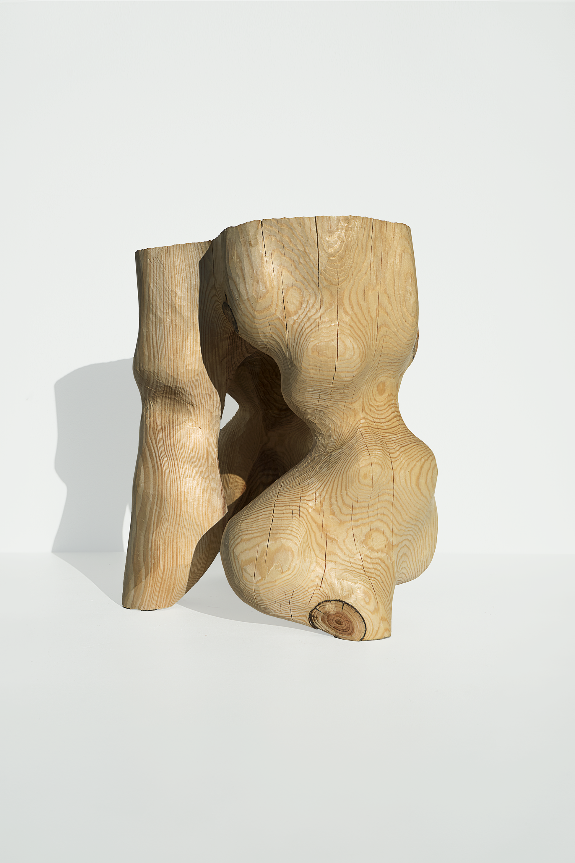 The chair was made from pine tree that felll after the storm. The wood was processed by hands without the use of machines. Moving around Europe in the car in which Touch With Eyes set up their workshop, they guys were able to work "on the fly" in fields and on beaches. The surrounding world with its nature became the main source of inspiration and the basis for work. That is how the idea of taking materials for their projects from the environment sprang up: trees and stumps discarded by the sea, shells on beaches and buoys from fishing nets. All these “treasures” were given a new life, new shape and new function, and the audience got the opportunity to feel the sea and the sun, salt and sand, stones and earth.